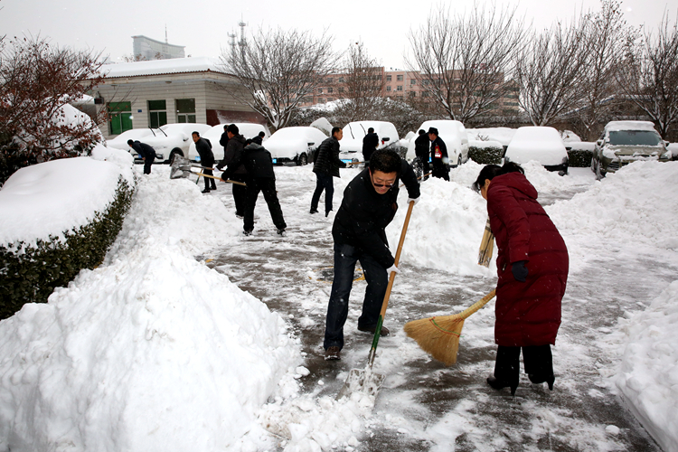 冷冽寒风中,大家分组有序对院内外积雪开始清扫,同志们的手和脸都冻得通红。然而,这一切丝毫没有影响大家的热情和工作效率。在局领导的带领下,同志们发扬吃苦耐劳、顽强拼搏的精神,不畏严寒,团结协作,最终将院内积雪全部清扫干净。
